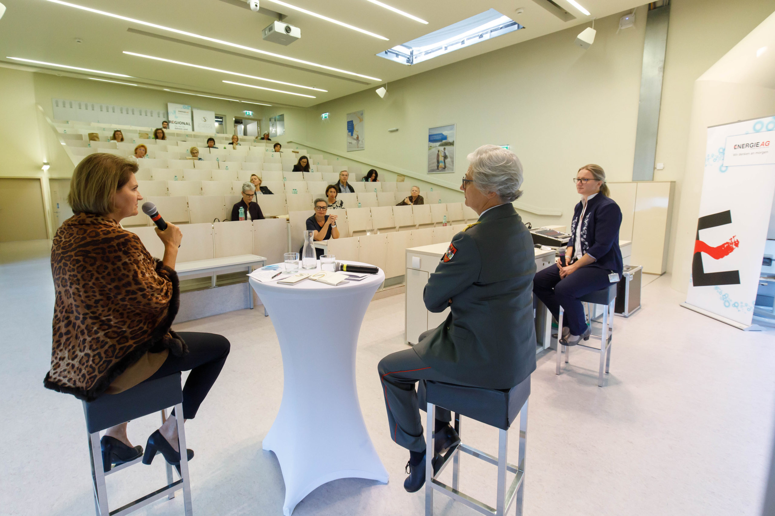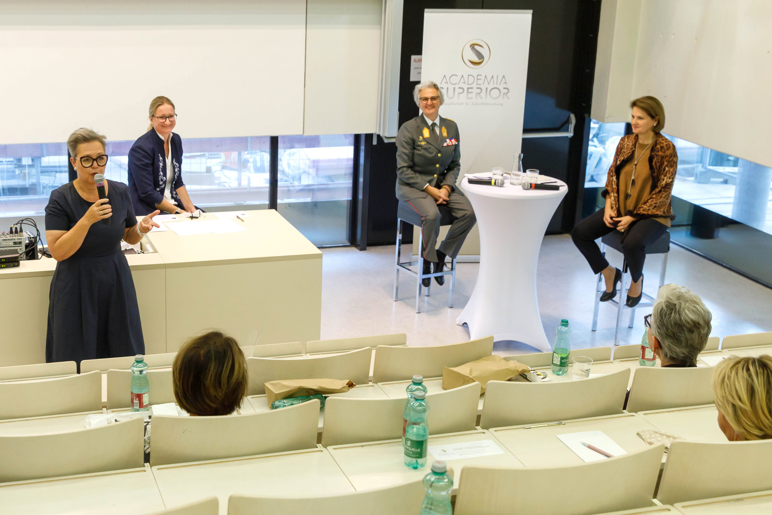 Als Impulsgeberinnen eingeladen waren Gertrude Schatzdorfer-Wölfel (Geschäftsführende Gesellschafterin Schatzdorfer Gerätebau) und Brigadier DDr. Sylvia Sperandio, MBA (Leiterin des Militärischen Gesundheitswesens).