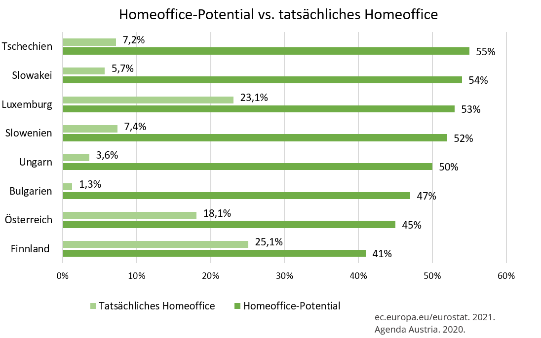 Agen­da Aus­tria (2020): Wo in Europa im Home Office gear­beit­et wer­den kann.