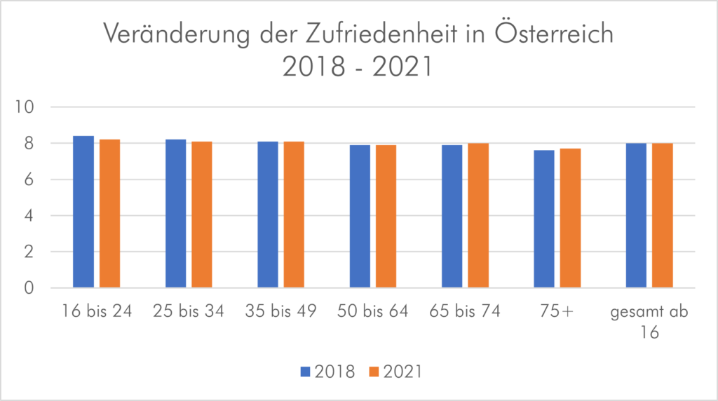Veränderung der Zufriedenheit nach Alter in Österreich