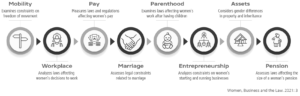 Der Bericht erfasst Reformen, die zwischen September 2019 und Oktober 2020 durchgeführt wurden. Die Reihung erfolgt anhand der Beantwortung von 35 Fragen zu den acht Themenbereichen: Bewegungsfreiheit und Mobilität, Arbeitsplatz und Erwerbstätigkeit, Einkommen, Hochzeit, Elternschaft, Unternehmertum, Vermögen(swerte) und Pension.