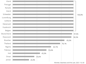 Laut dem kürzlich von der Weltbank veröffentlichten Bericht „Women, Business and the Law 2021“ gibt es weltweit nur zehn Länder, die Frauen umfassende rechtliche Gleichstellung bieten: Belgien, Frankreich, Dänemark, Lettland, Luxemburg, Schweden, Kanada, Island, Portugal und Irland.