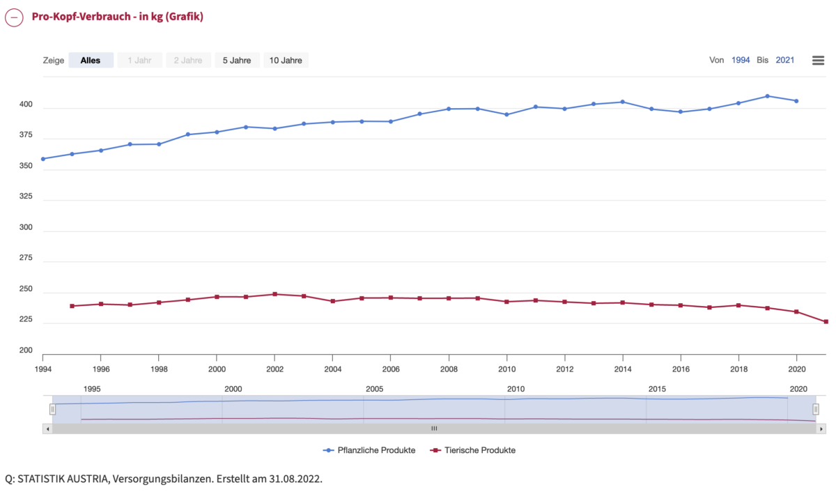 Quelle: Statistik Austria, Versorgungsbilanzen, Pro-Kopf-Verbrauch – in kg (Grafik). URL: https://www.statistik.at/statistiken/land-und-forstwirtschaft/landwirtschaftliche-bilanzen/versorgungsbilanzen