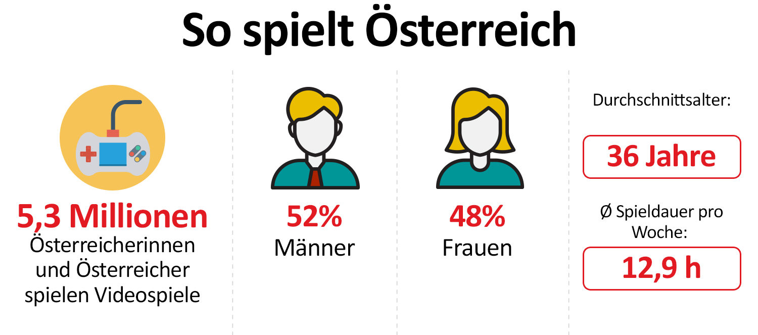 [2] Öster­re­ichis­ch­er Ver­band für Unter­hal­tungssoft­ware, Gam­ing in Aus­tria 2021 https://www.ovus.at/wp-content/uploads/2021/12/Infografik-Gaming-in-Austria-2021.jpg [05.07.2023]