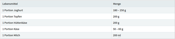 Zusätzlich sollten drei Portionen Milchprodukte verzehrt werden, davon sollte eine Portion Käse sein.[13]