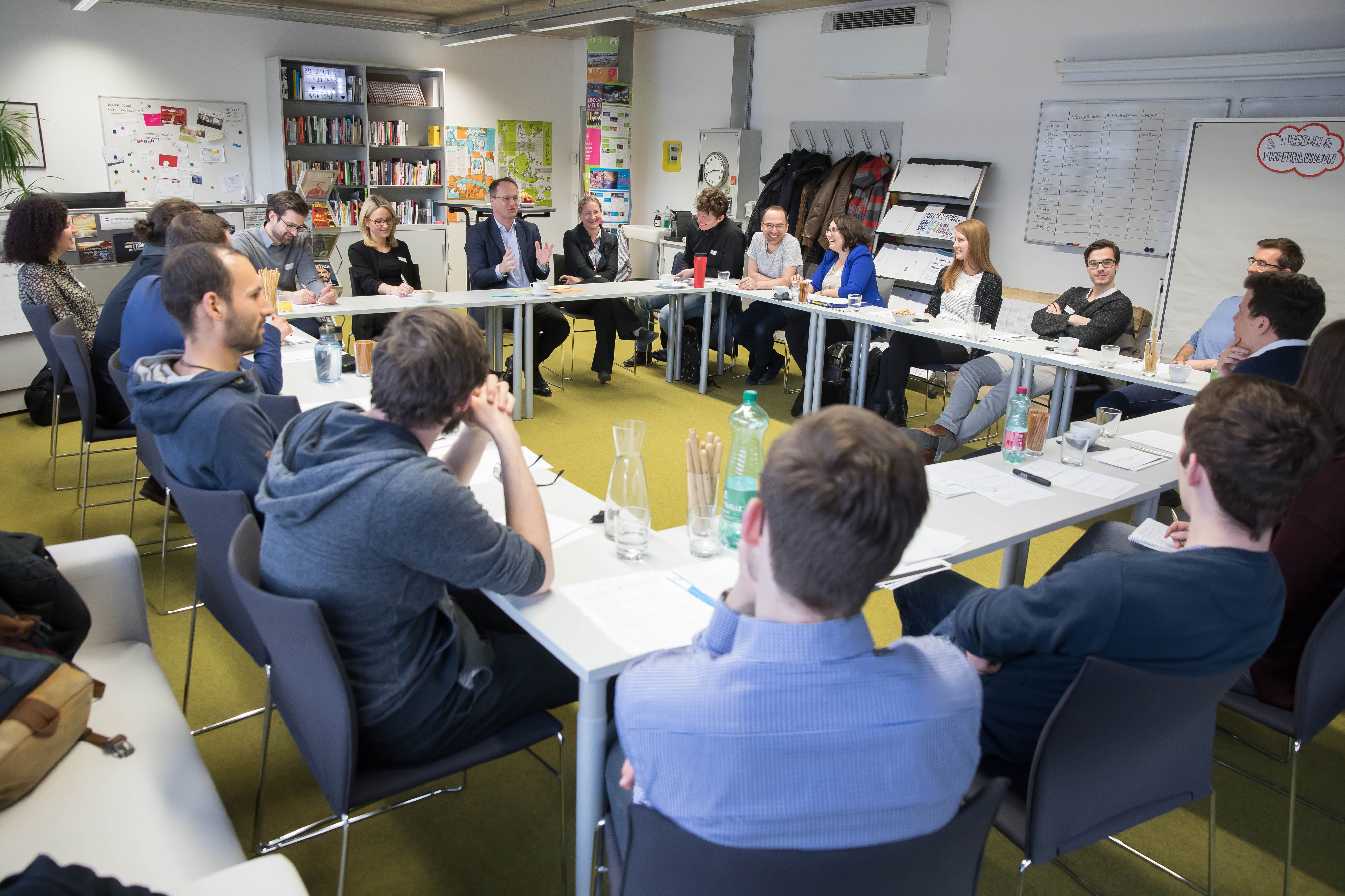 Studierende und Markus Hengstschläger bei den Diskussionen in der ACADEMIA SUPERIOR